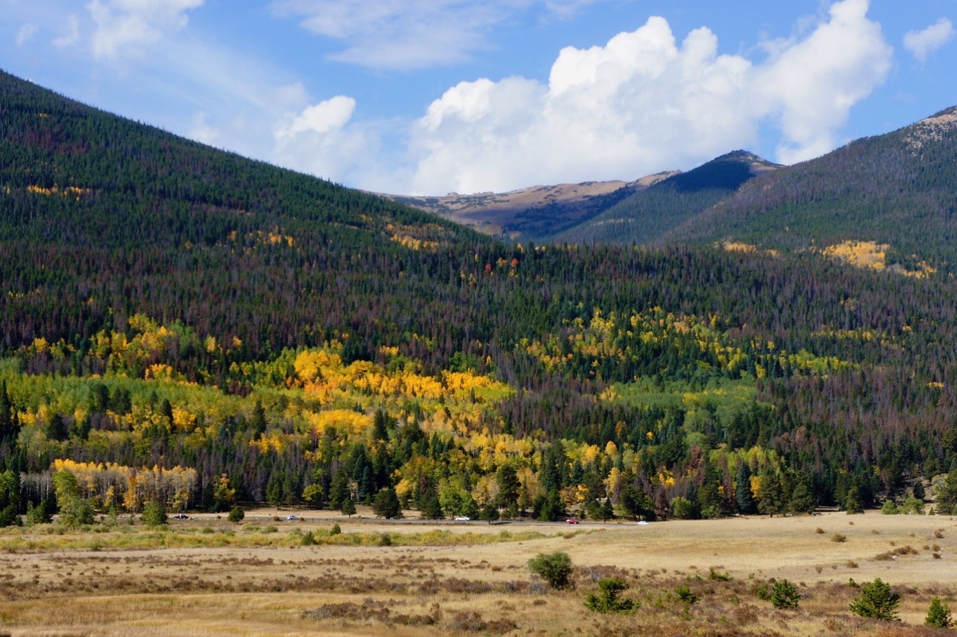 We rijden verder naar de Bear-lake road, waar ook nog een paar Elks staan. Maar hier gebeurt niets spectaculairs. Daarom keren we de camper en rijden naar Estes Park, waar we bij de McDonalds een ontbijtje pakken en Marja nog wat kan uploaden met de Hot-Spot. Een Starbucksje verder besluiten we langs de North-Entrance het park weer binnen te rijden. Daarvoor stoppen we ook nog even bij het Fall river visitor center (met souvenirwinkel er naast). Daar hangen een paar mooie vesten, maar die kosten ook wel aardig wat. Zo’n $ 160 en dat is met de huidige koers toch nog een aardig bedrag. Bovendien vraagt Marja zich af of dit een vest is dat je thuis ook nog wel zal dragen.