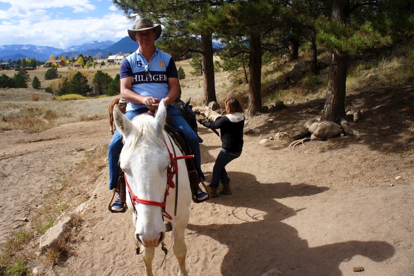 De rest van de dag valt bij dit paardrijden natuurlijk in het niet. We gaan ‘s-avonds in Estes Park wat eten, komen dan in onze 4e bui terecht, met wat stormachtige wind erbij. Maar ook deze bui is weer zo voorbij. Voordat we in een restaurantje belanden lopen we nog een zaakje binnen waar ze ook van die Painted-Pony paardjes verkopen. En daar staan wel weer een paar mooie exemplaren tussen. We besluiten er nog eentje te kopen.