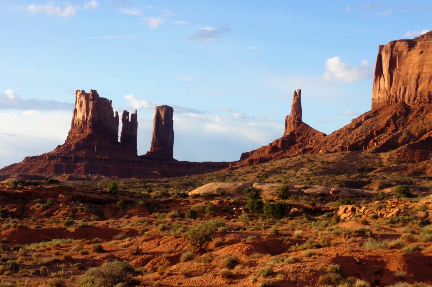 Elke ochtend een strakblauwe lucht en al vroeg weer warm. Zo ook de ochtend in Monument Valley. We willen de zonsopgang i n de Valley zelf bekijken en eventueel vastleggen. Maar dan moet je wel vroeg op. En deze keer zijn we eigenlijk een beetje te laat op. Maar misschien halen we het nog. De Bute’s staan nog niet in de zon en als we snel zijn met de camper rij-klaar maken….. Dus snel het vuilwater afgevoerd, het verswater bijgevuld en alle slangen opgeruimd, de slide-out in, alle luiken en luikjes dicht…. rijden maar. Maar dan zien we dat we te laat zijn. De zon is boven de Bute’s gestegen en dan heb je alleen nog maar tegenlicht. Dus dat gaat niet werken. Dus maar links af in plaats van recht door en een punt op de weg zoeken waar je de beroemdste foto van Monument Valley kunt proberen te evenaren. Op en stuk van een aantal mijlen stoppen we wel zes keer geloof ik. En uiteindelijk op de laatste hoogte voordat je de beroemde drie Bute’s uit het oog verliest hebben we denk ik de juiste plek gevonden. Dus maar weer een paar foto’s geschoten.