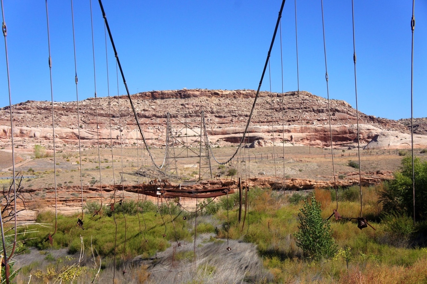 Als we nog in de canyon rijden komen we ook nog bij een historische brug (Deweybrug heette die geloof ik). Er was alleen niet veel van over. Er hingen nog een paar planken recht en voor de rest alleen maar kabels. En er stond een bordje bij: donations needed. Nou dat was wel duidelijk.