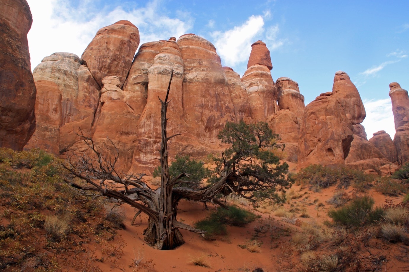 Een verschil met gister is ook dat we in Arches het gevoel hebben deel uit te maken van het gebied waar we door rijden. Gister bij Canyonlands (en ook bij Bryce) reed je door een landschap dat geen geheel vormde met wat je op de viewpoints te zien kreeg. In Arches biedt de omgeving zelf al de bezienswaardigheden en hoef je niet perse van punt naar punt te rijden om de mooie dingen te zien.