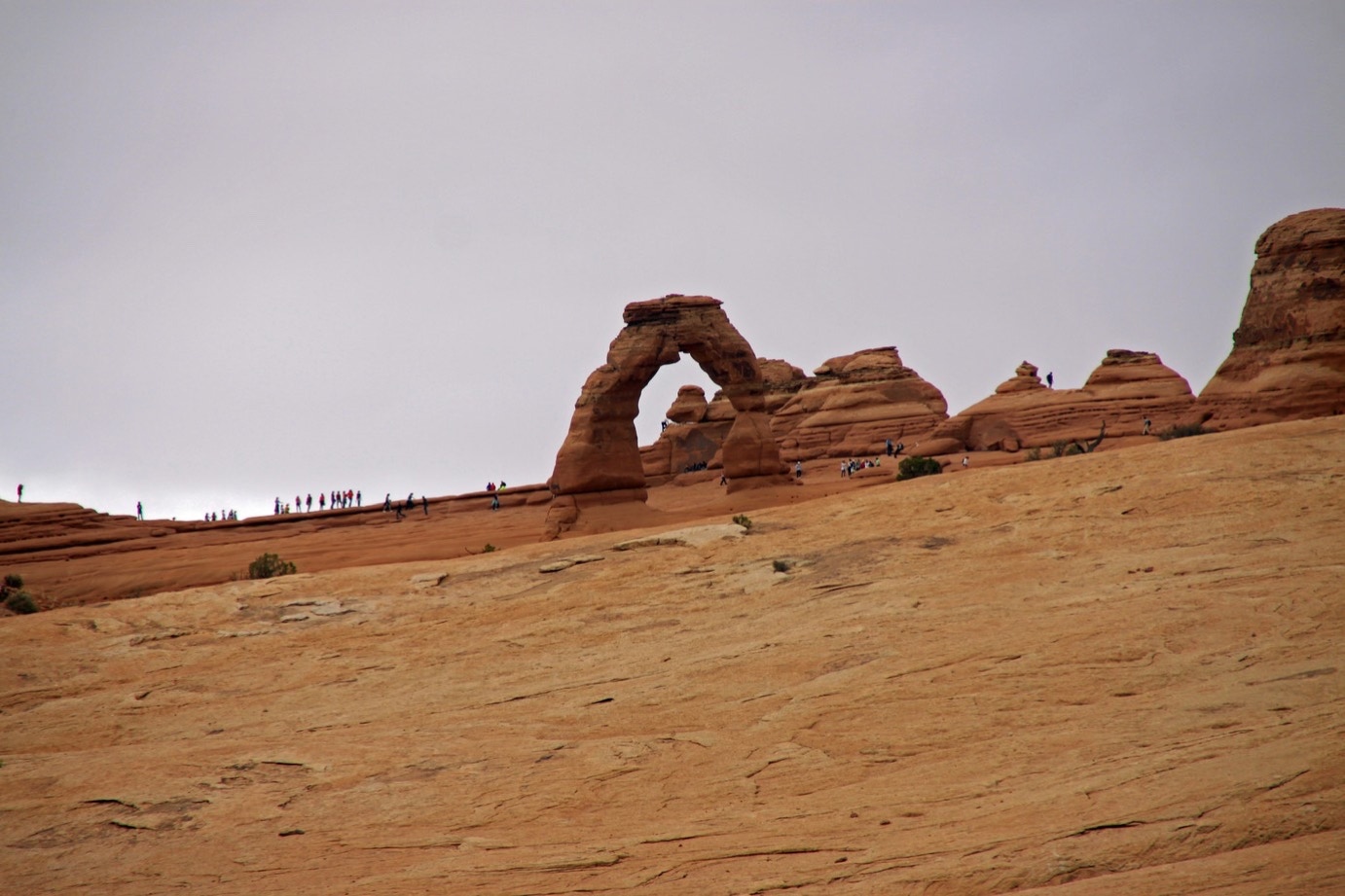 Daar maak ik in twee tellen twee foto’s van de Delicate Arch en we kijken elkaar aan en zeggen: kom we gaan.