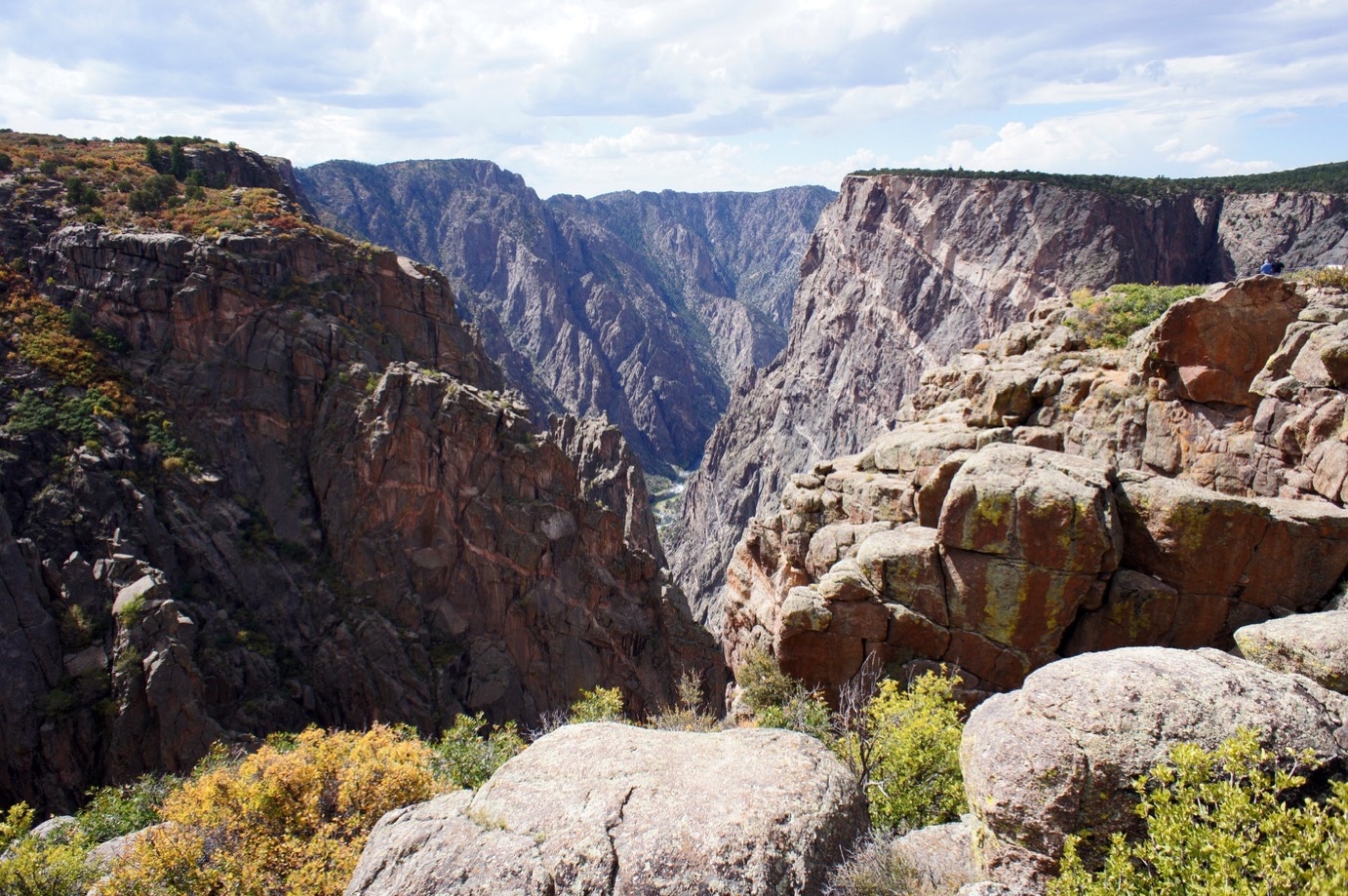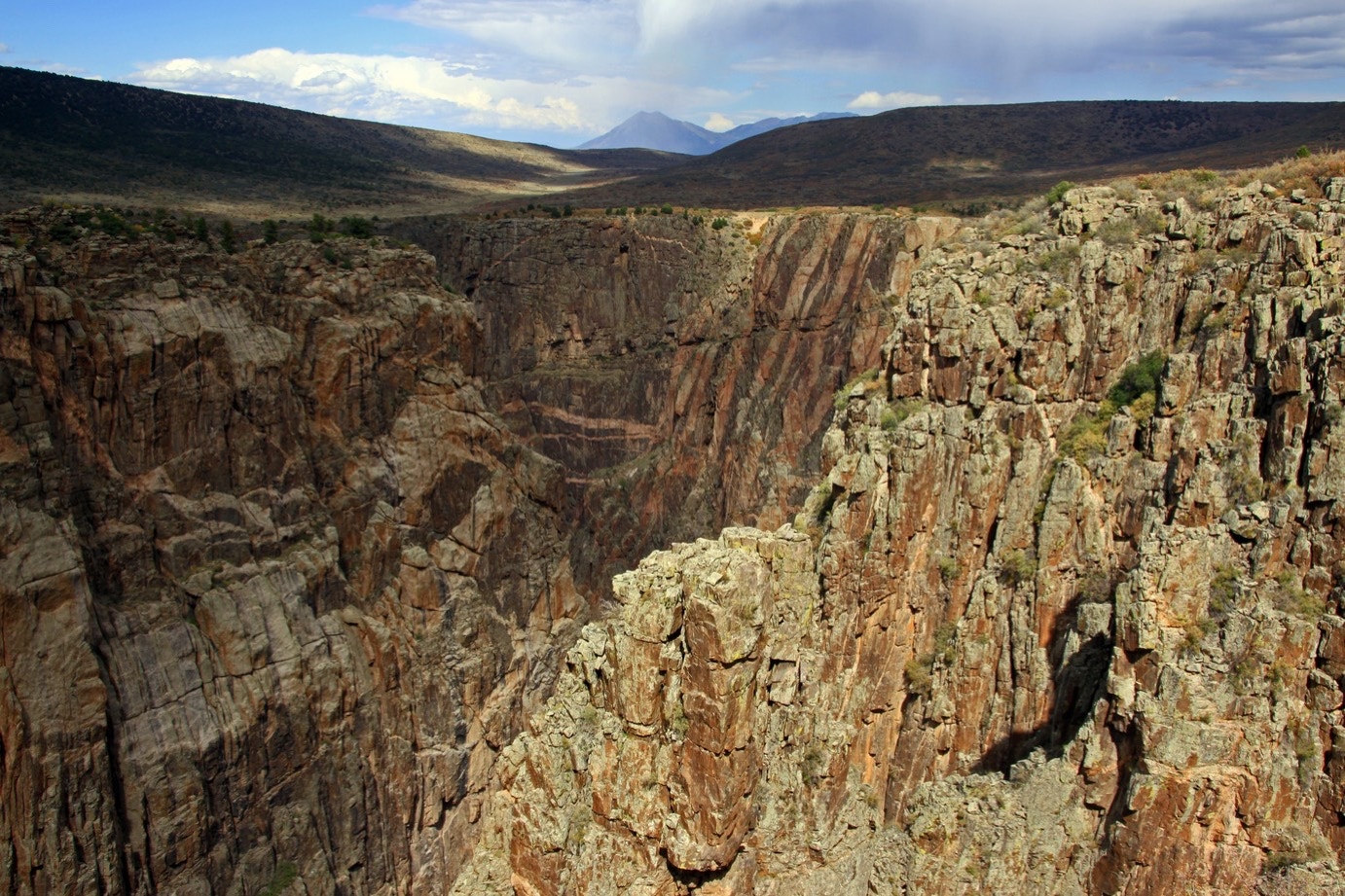 Op weg naar Black Canyon of the Gunnison. Een waarschijnlijk bij het grote publiek wat minder bekende canyon en dat is dan absoluut onterecht. Oké het is geen Grand Canyon, maar dat is ook een uniek geval natuurlijk. Maar deze canyon heeft iets ruigs, maar aan de andere kant ook een bepaalde soort eenvoud over zich. Hij is overzichtelijk. Bij de Grand Canyon weet je eigenlijk niet goed waar je moet kijken, zo uitgestrekt, zo vertakt als deze is. Deze Black Canyon bestaat in feite maar uit één diepe kloof, waarin je op de bodem heel duidelijk de eigenlijke ontwerper van deze canyon ziet stromen: de Gunnison-rivier. Maar het is wel een kloof van toch ook een overweldigende schoonheid. Dat klinkt misschien wat overtrokken, maar het is wel zo.