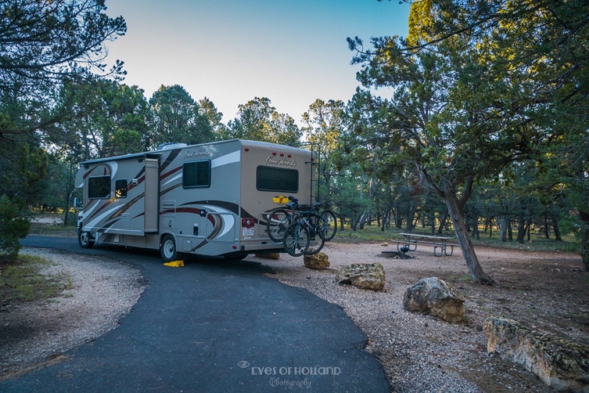 De campground zelf heeft een aantal plekken die aan de rim liggen. Deze plekken kosten iets meer. Je hebt ook niet echt uitzicht op de rim maar op een soort zijtak. Desondanks een geweldige plek om te staan. Daarbij is de North rim rustiger en in onze ogen mooier dan de south rim.