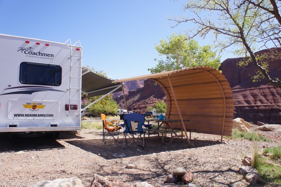 Met uitzicht op Lake Powell op loopafstand van het strand. Nette campground, betaalde douches. Slechte wifi, full hook-up. Prima campground om Antilope Canyon te bezoeken. Een boot of kajak te huren op Lake Powell. Ga ‚s avonds echt een keer eten bijBig John’s Texas Barbeque.