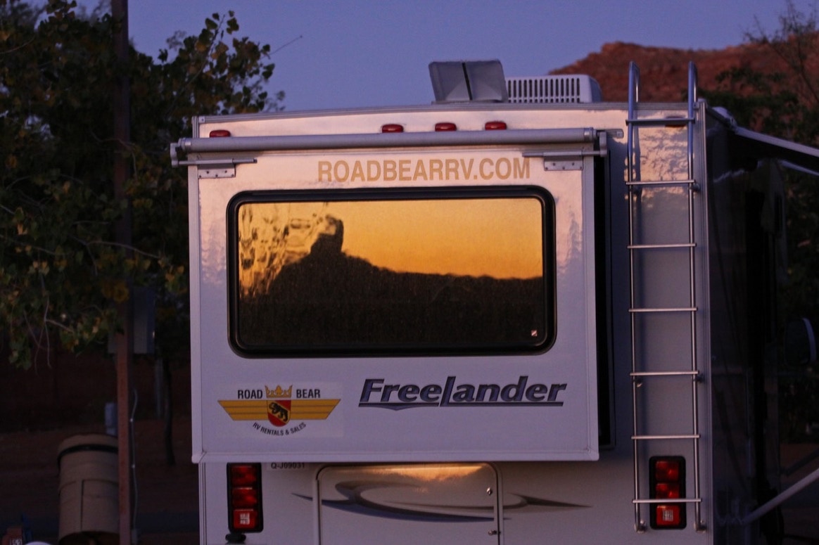 De campground op zich is niet bijzonder, alle plekken liggen op een rij. Bij reservering reserveer je geen vast plek. Bij aankomst kun je zelf een plek op de rij uitkiezen. Het uitzicht vanaf deze campground is geweldig. Je kijkt op de buttes, en maakt de zonsopkomst en de zonsondergang mee. Dat op zich is al geweldig! Vanaf de campground kun je een trail lopen om een van de buttes. Wij hebben wegens harde wind deze trail niet gelopen.