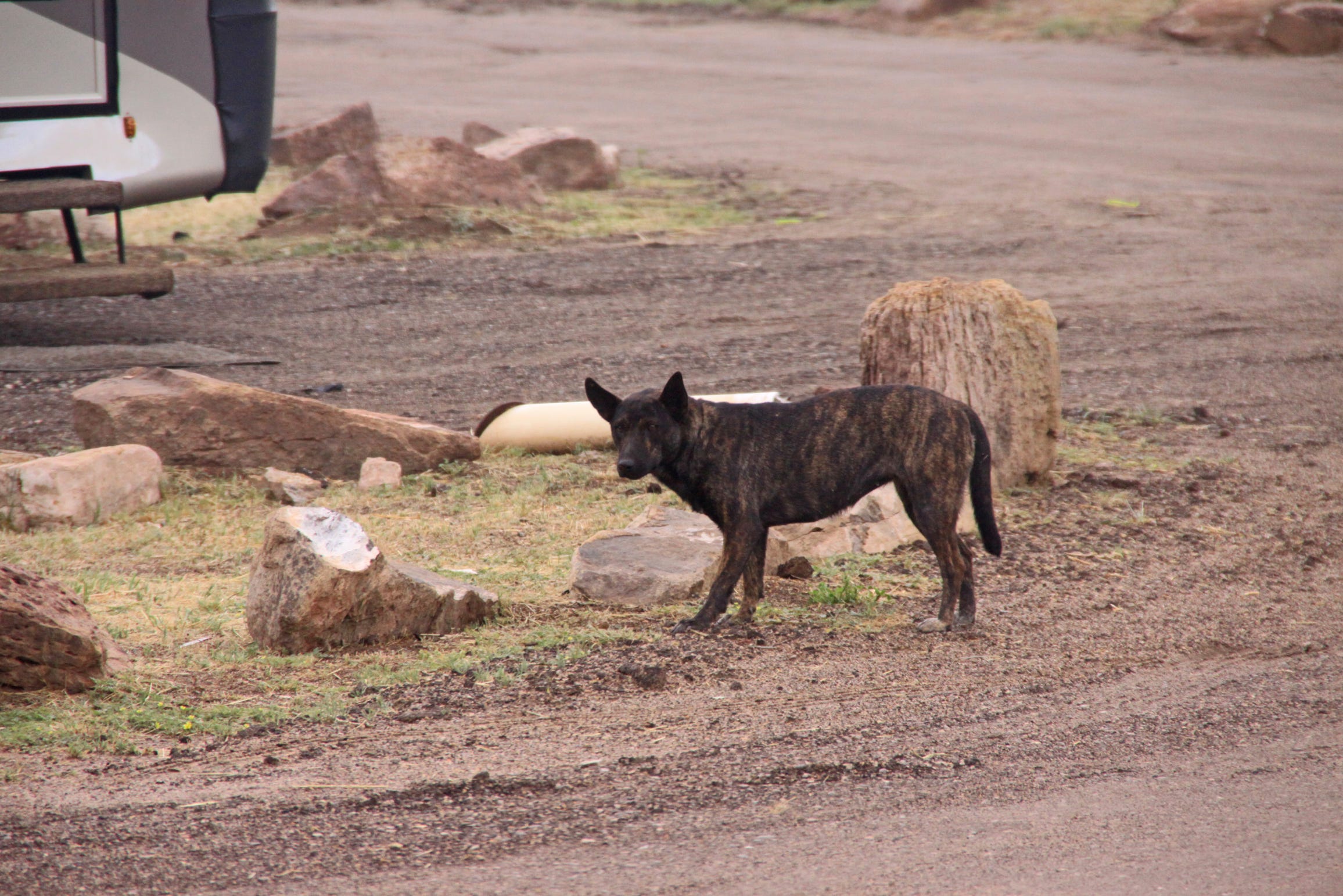 Gratis campground bij National park Canyon the Chelly. Ruime plekken met de gebruikelijke picnick tafel en firepit. Op de een of andere manier voelde deze campground niet goed. Dat kan ook komen door dat het in Navajo gebied ligt. Het lijkt romantisch om in Navajo gebied te kamperen, tussen de indianen, maar het tegendeel is waar. De Navajo’s blinken niet uit in vriendelijkheid. Je voelt je zelfs niet echt welkom. Verder liepen er, zoals gebruikelijk in Navajo gebied, heel vee zwerfhonden over de campground. Nu ben in wel een honden liefhebber, maar veel half wilde zwerfhonden rond je camper vindt ik dan toch weer wat minder.