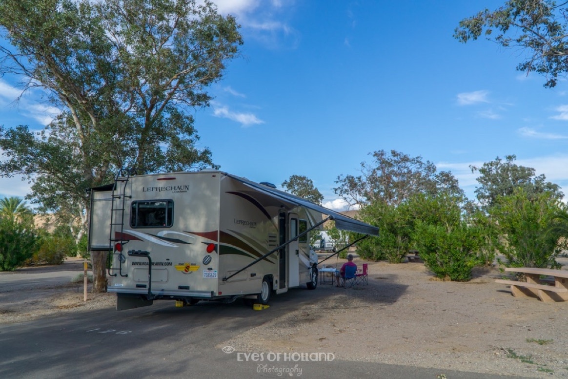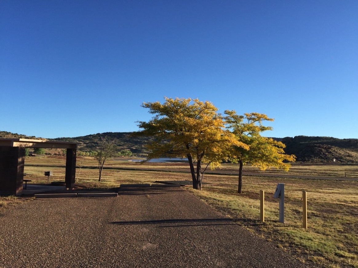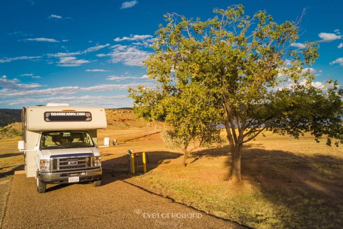 Mooi gelegen campground, aan Lyman Lake. Met zicht op het meer. Overkapte picknick tafel, bbq en fire pit. In oktober was het hier erg rustig. Maar een paar andere campers. In de zomer zal het hier vast drukker zijn met watersporters.