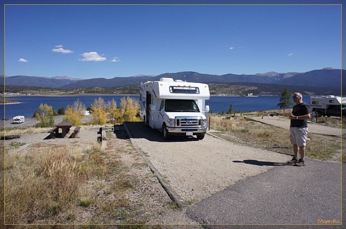 Gelegen op een soort landtong in Lake Granby. Je kijkt aan drie kanten over het meer heen. Met name met zonsopkomst en zonsondergang prachtig. Je verwacht ook op elk moment een Moose voorbij te zien komen (is helaas niet gebeurt) Mooie ruime vlakke plekken, met een paar plekken met electra, verder douches, toilet en dumstation. Geen bomen, dus geen schaduw en geen bescherming tegen wind. Wel een prachtige plek om te staan.