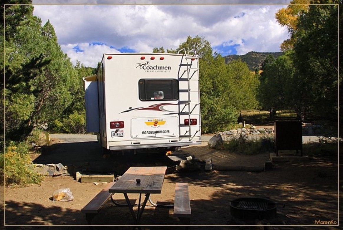 Gelegen aan de doorgaande weg, aan de rand van Manitou Springs. Niet heel ruim opgezet, wel een leuke campground met plekken aan het riviertje. Veel eekhoorns op de campground. Je kunt vanaf hier lopend het dorp in. Manitou Springs is een leuk maar wel toeristisch dorpje. Campground is een prima uitvals basis voor de tram naar Pikes Peak of een bezoek aan Garden of the gods.