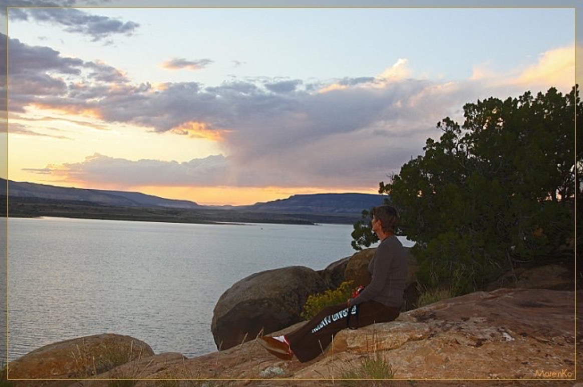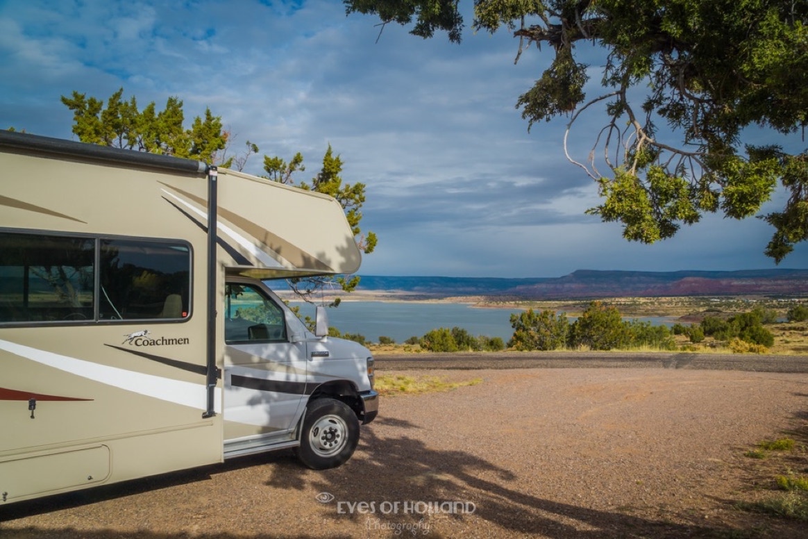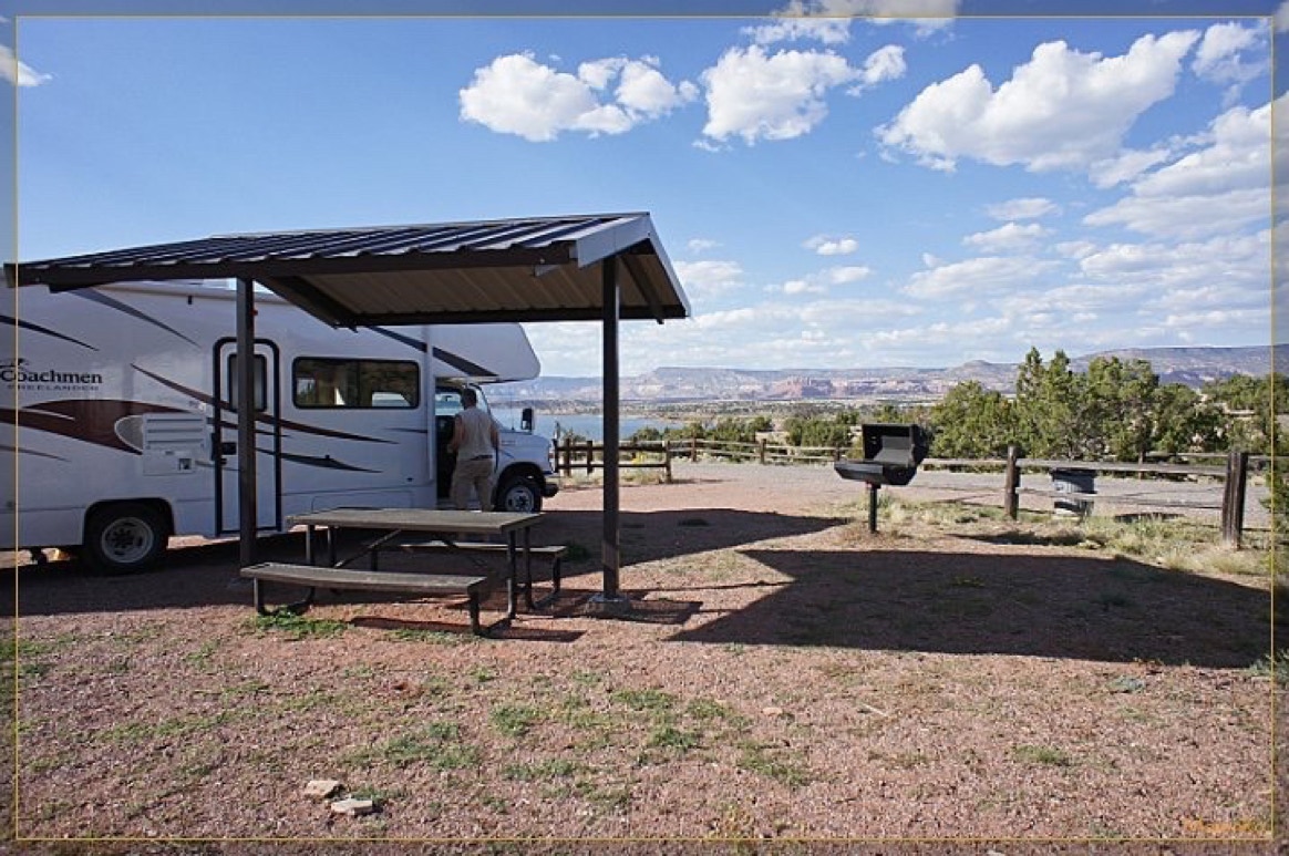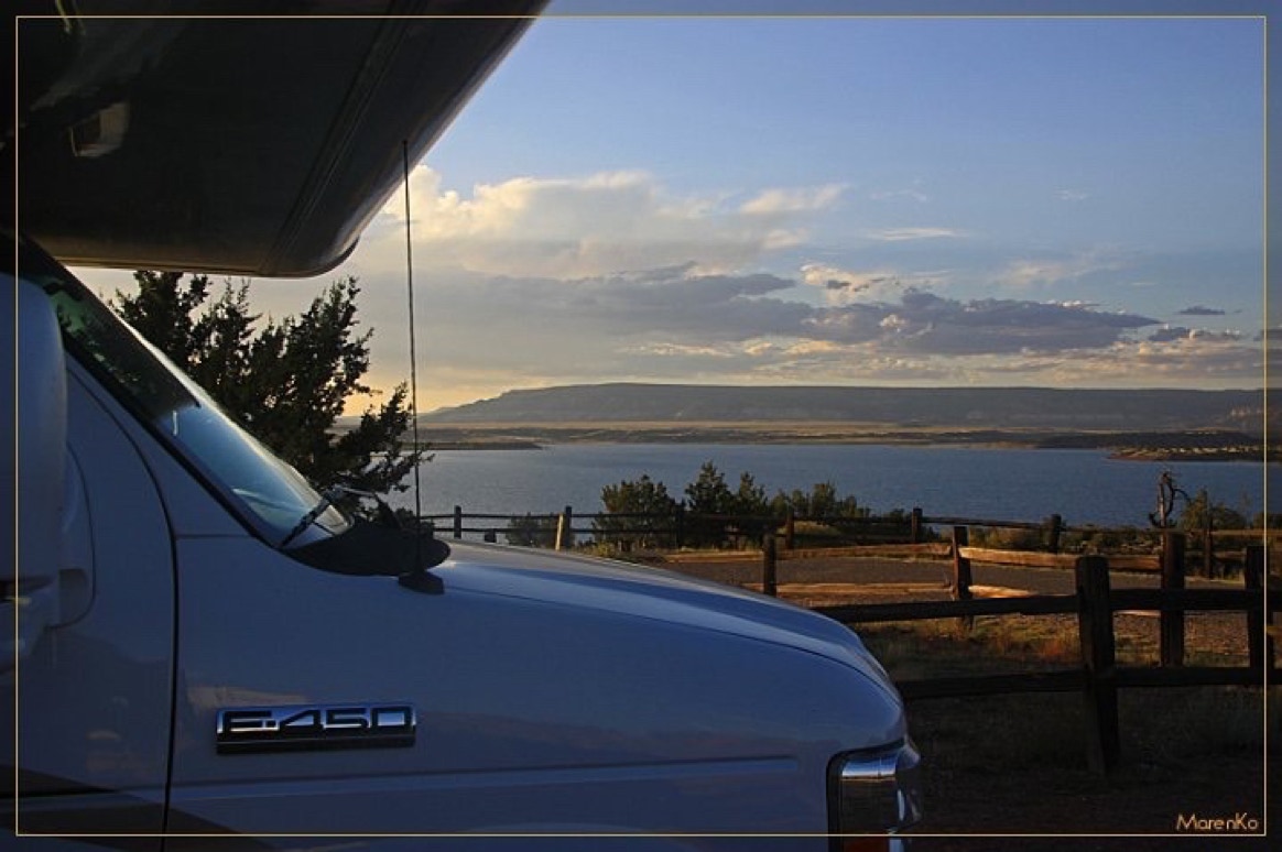 Hier terecht gekomen nadat we het weer even zat waren. Gebeurt wel vaker tijdens onze rondreizen, en dan gooien we de kop in wind, rijden niet meer volgens de route en gaan op zoek naar een leuke plek. En zo kwamen we hier terecht. Wat een prachtige plek. Ik denk de meest ruime plekken welke we ooit gehad hebben, met een geweldig uitzicht over Lake Abiquiu. Je kunt naar het meer lopen en waarschijnlijk kun je daar ook nog wel lekker in zwemmen. Een heerlijke plek weg van de drukte, om even bij te komen.