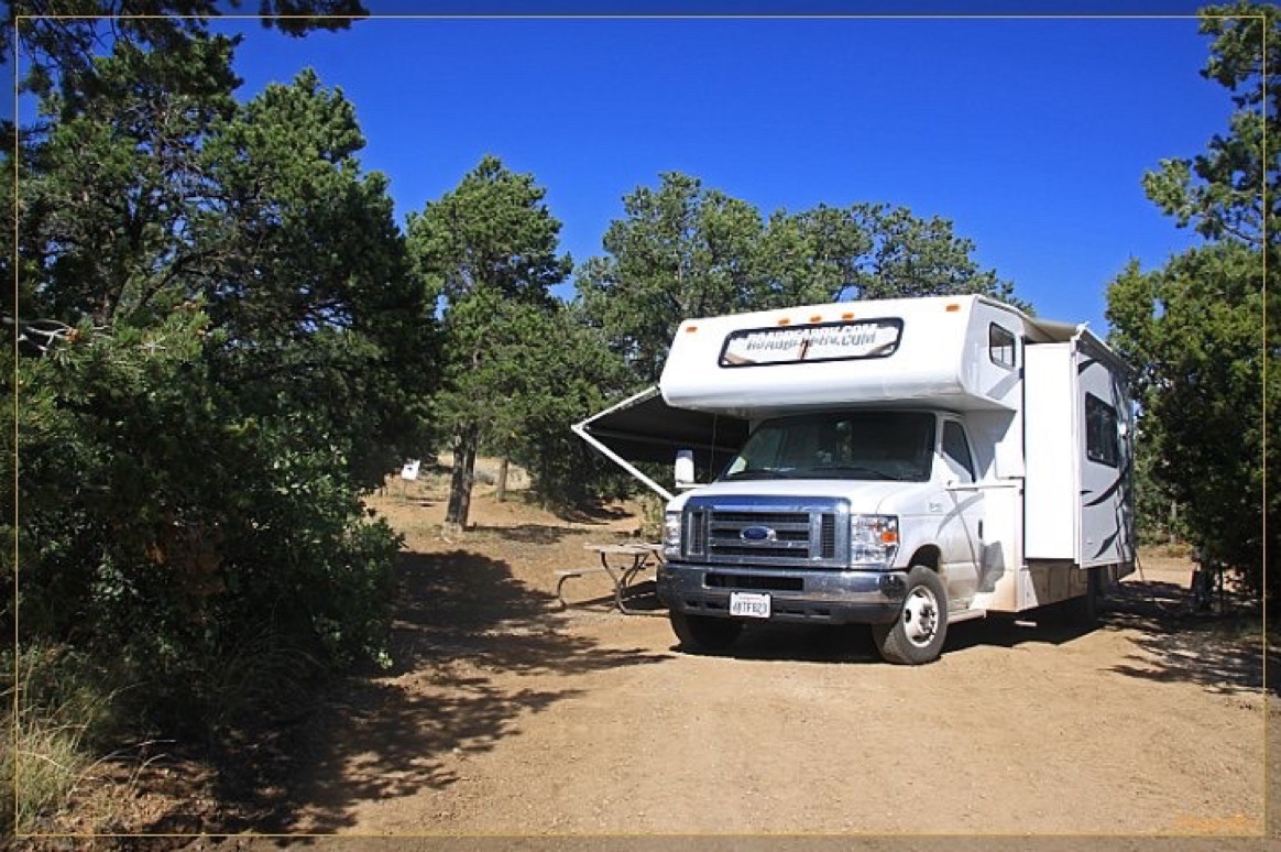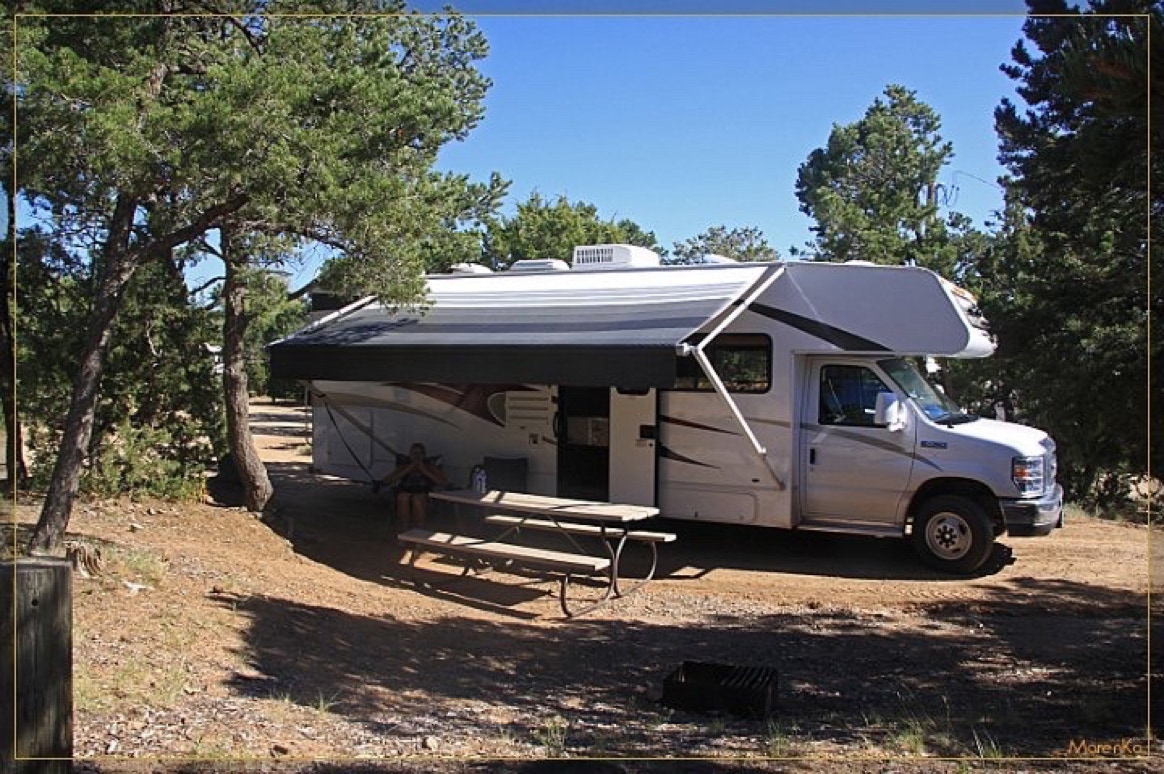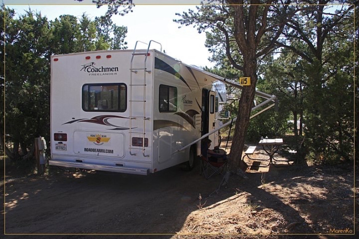Campground ligt aan de rand van Santa Fe. Het is een private campground maar het lijkt bijna een state park. Mooi tussen de bomen gelegen. Leuke plekken, niet helemaal vlak, met fire pit.