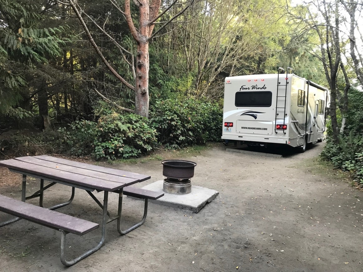 Mooie state park camping, met op loopafstand een heel breed strand. Typische state park plekken met voldoende privacy. Sanitair zijn we niet geweest. Camping was wel al behoorlijk vol (september) er waren nog een paar plekken beschikbaar. ’s avonds in het donker hoorde we duidelijk wildlife dicht bij de camper, niet kunnen ontdekken wat het is geweest. Verder leuke eekhoorntjes rond de camper.