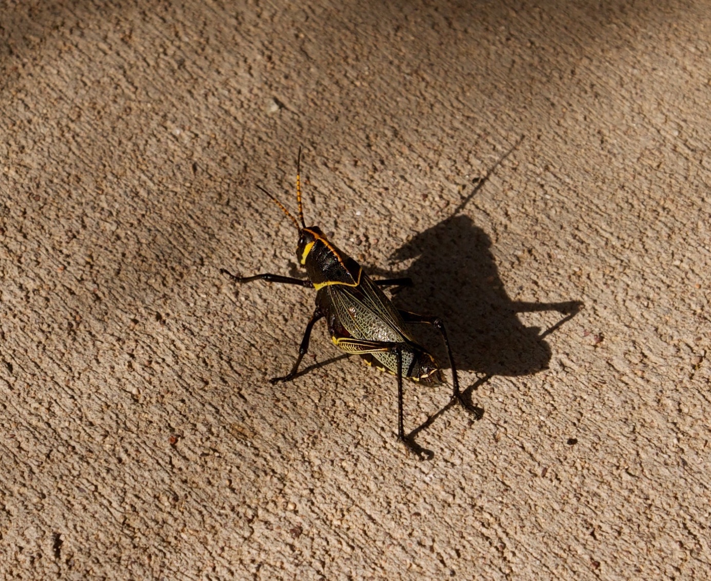 Voor het eten doen we het makkelijk en halen een sandwich en een paar soort van wraps, waar we ons tegoed aan doen. Onderweg naar het cafetaria zien we overigens een flink aantal hele grote krekels of zoiets. Als ze vliegen of springen (ik weet niet wat die beesten doen) hebben ze een rode onderkant. En op zich zijn het ook best wel mooie dieren, met bijzondere tekening. Ik heb ze denk ik alleen niet helemaal goed op de foto gekregen.