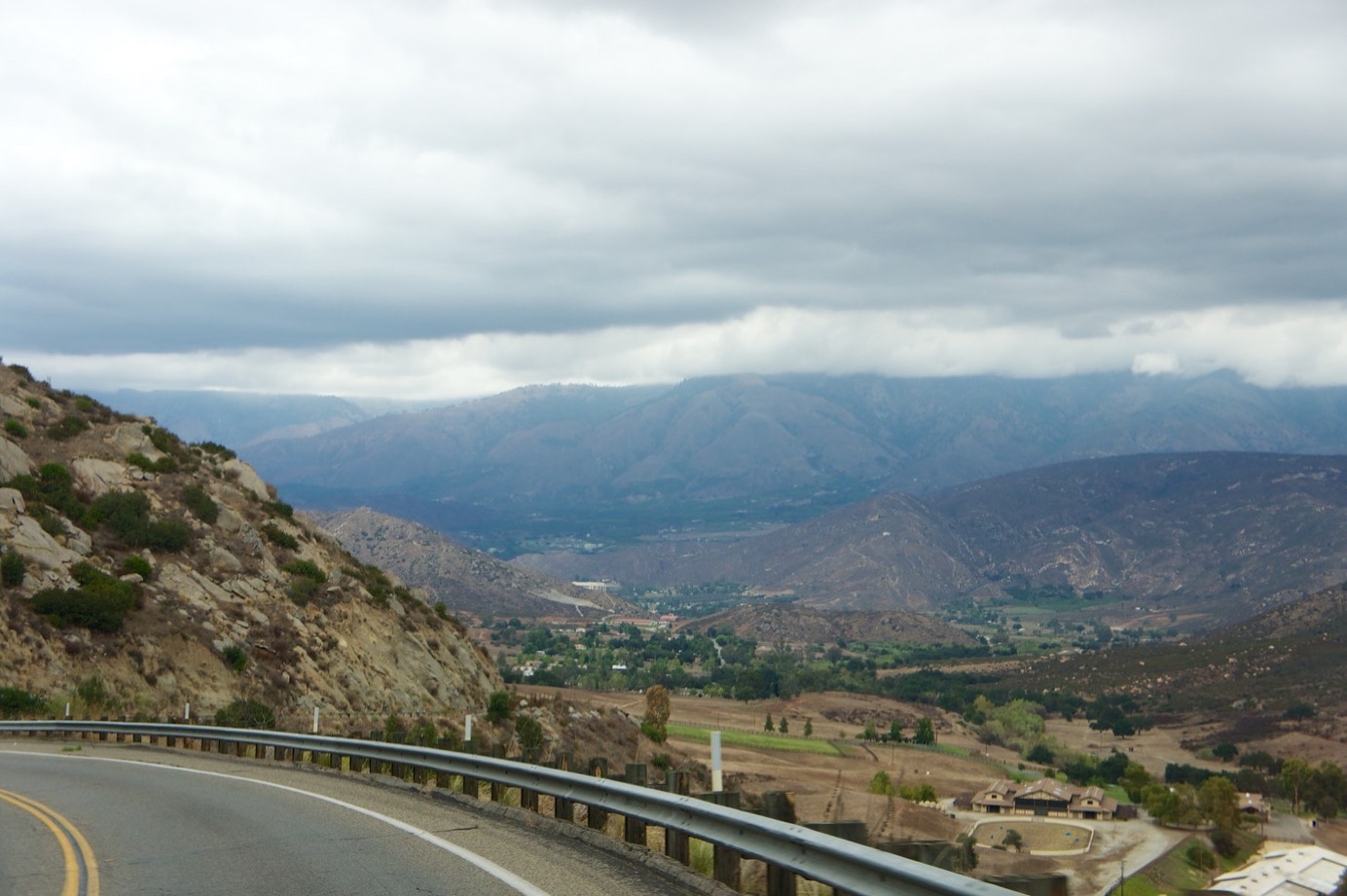 Verder gaat de reis en later zal Marja zeggen geen idee te hebben hoe we daar gekomen zijn, maar op een bepaald moment - en het is nog altijd bewolkt en dreigend - ziet Marja een bordje met daarop Palomar Mountain. En ze roept: ga die maar in. Iemand van het forum heeft gezegd dat dit een hele mooie weg is en dat we die zeker moeten volgen, vanwege de geweldige uitzichten.