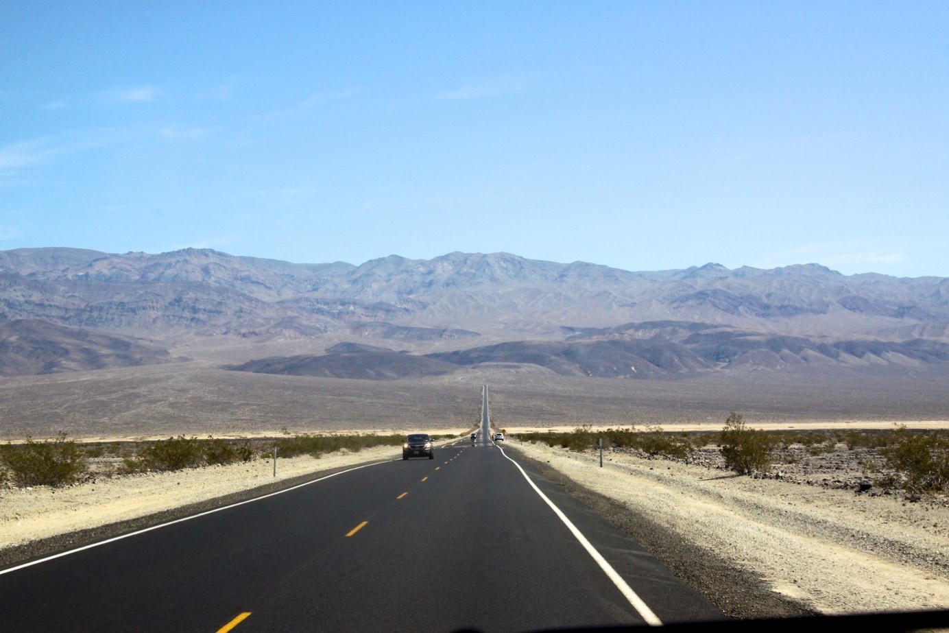 Nadat we bij de bakker zijn geweest lopen (nou ja) we weer terug naar de camper en begeven we ons op weg naar Death Valley. Ook hier weer momenten van herkenning en op sommige plekken, waar we zeker twee jaar geleden ook hebben gereden, toch ook weer niet. Dat we denken: dit kan ik me helemaal niet meer voor de geest halen. En op een plek die we ons wel herinneren en waar we twee jaar geleden hobbelend een parkeerplekje hebben gezocht over keien en kleine rotsblokken ligt nu bijvoorbeeld een keurig aangelegd parkeerterrein.