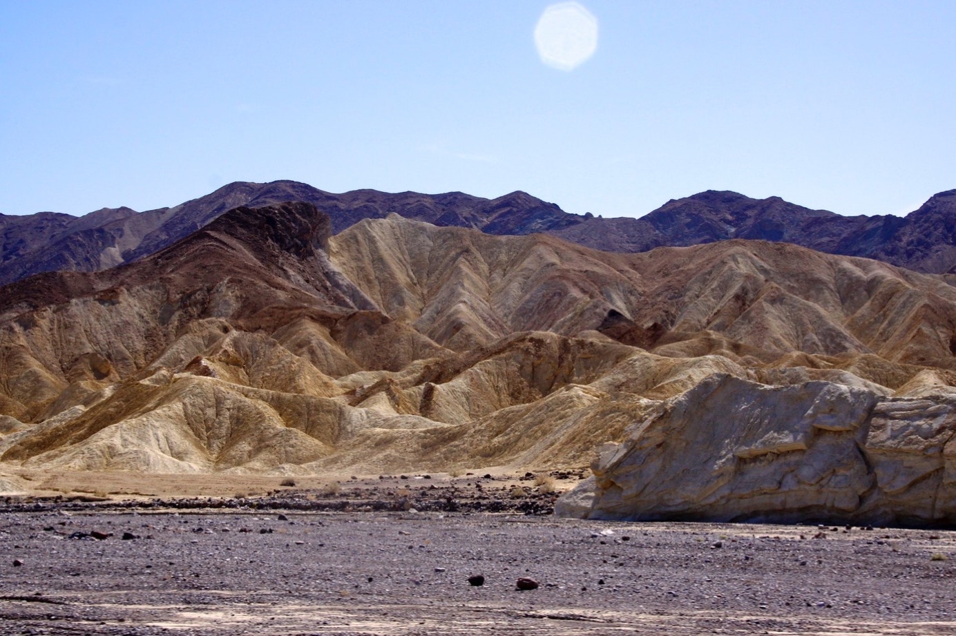Dit alles heeft tot gevolg dat we dit keer in een keer Death Valley doorkruisen. Maar niet zonder vol verwondering en verbazing te hebben gekeken naar de grote verschillen en contrasten in kleuren en rotspartijen en vlaktes in een plaats die Dode Vallei heet. Je moet er geweest zijn om dat gevoel daarbij te kunnen begrijpen. Soms doet het zelfs een beetje onaards aan. Dus we hebben er ondanks de tegenvaller van Furnace creek toch zeker van genoten.