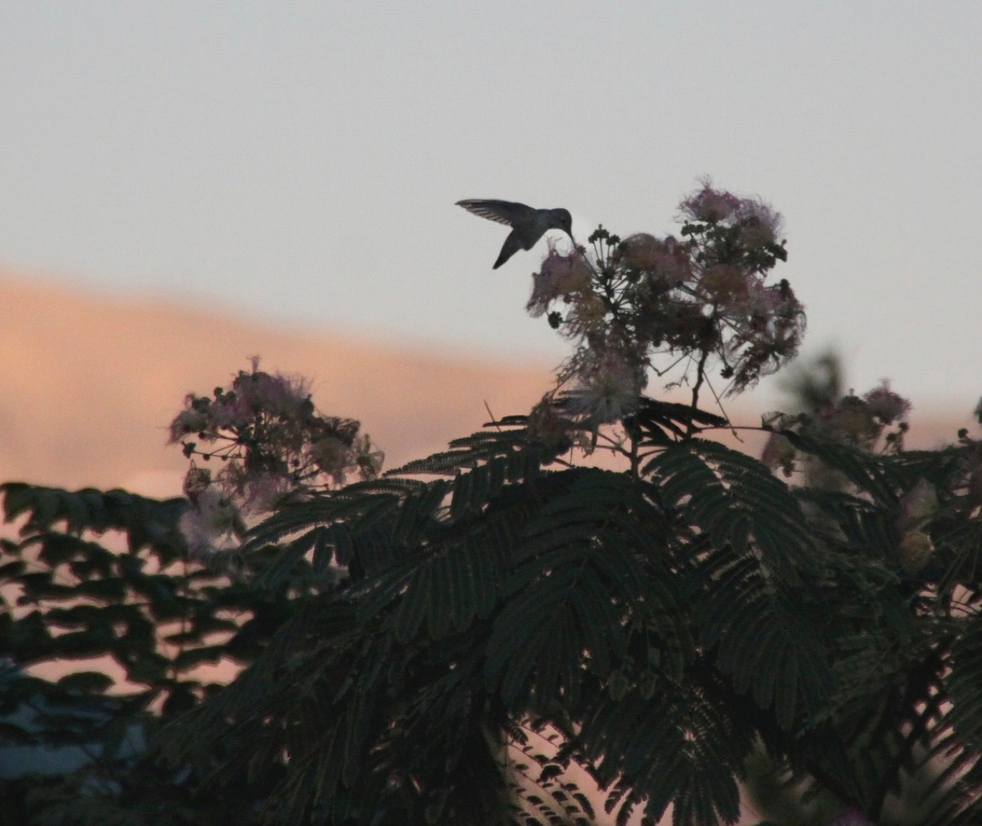 Wie we daar wel weer zien zijn een paar van onze humming-bird vriendjes. Dat blijven toch bijzondere beestjes om naar te kijken. Geweldig gewoonweg. Je hoeft er in ieder geval niet voor weg te lopen als voor een beer.