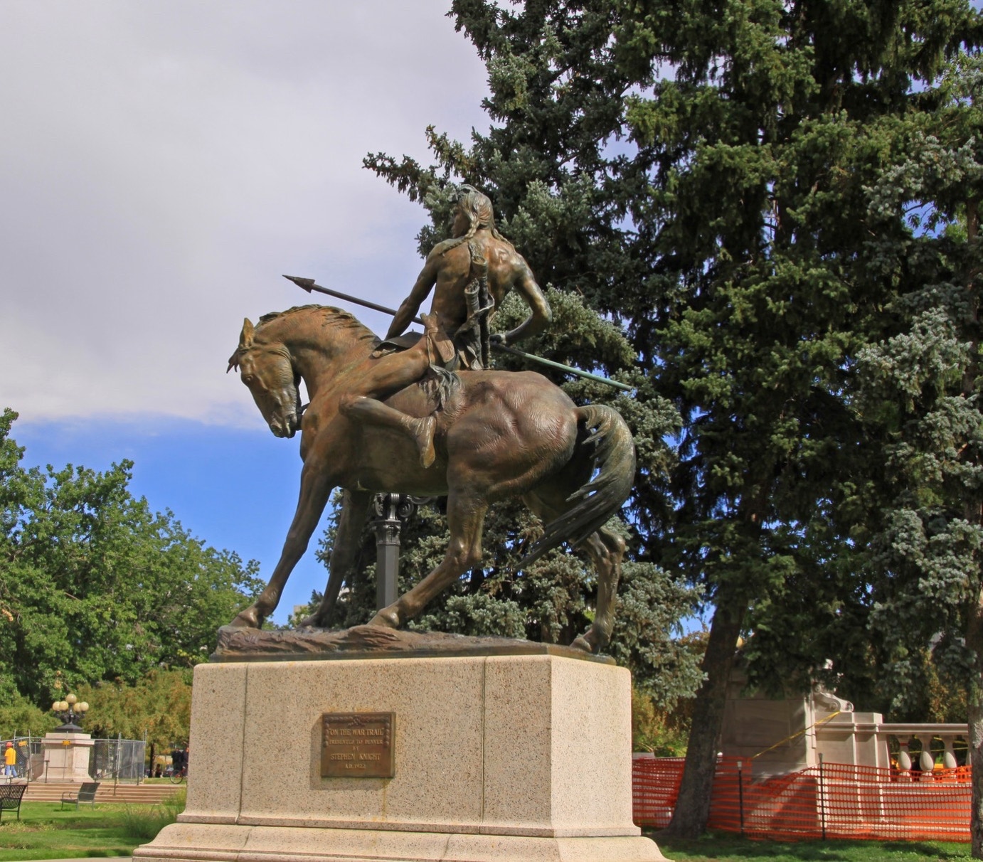 De straat is een mengeling van geschiedenis en nieuwe skyscrapers door elkaar. En er staan een aantal beelden die laten zien dat Colorado een cowboy en indianen achtergrond heeft en veel heeft met Rodeo’s.