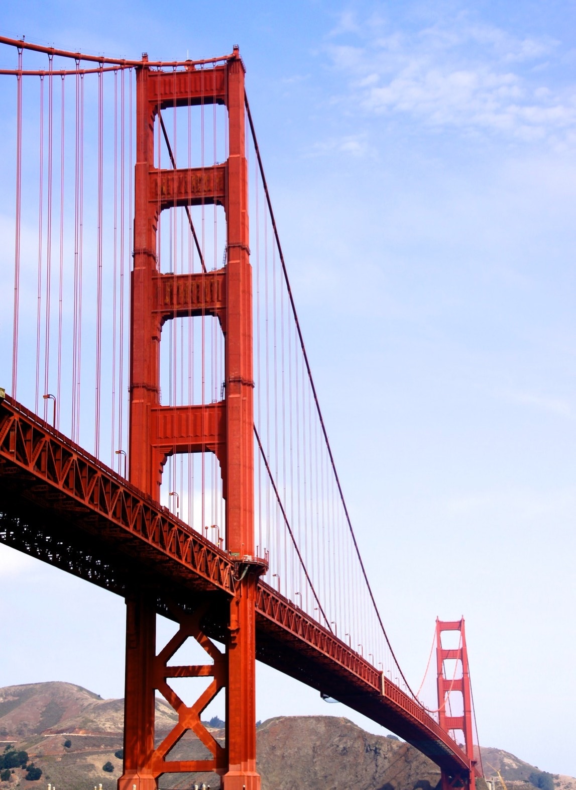 We stappen weer uit bij Powell street, en gaan eerst ontbijten bij Lorrie’s Diner. Hierna gaan we met de cable car naar Fishermans warf. We gaan namelijk weer fietsen. Bij Fishermans warf huren we dus 2 fietsen, en gaan op weg. Het duurt even voordat ik het schakelen op deze fiets door heb. Onderweg halen we een aantal toeristen in welke op electrische bikes rijden. De gids roept naar haar groep: “Come on guys, don’t let those normal bikes get ahead of us”. Waarop wij roepen dat we uit Nederland komen en wel gewend zijn om te fietsen. Even later wanneer het heuvel op gaat komt mijn schakelprobleem weer naar boven, en slaan mijn trappers door. Dus moet ik lopen, op dat moment haalt de gids van de electrische bikes ons weer. En lacht en roept iets. Tja wij hebben in Nederland nu eenmaal geen heuvels. We stoppen even bij het fort onder de Golden Gate bridge, maken een paar foto’s , rusten even en gaan weer verder. Op de brug is het weer erg druk. Ik fiets tot halverwege, en als ik stop kijk ik naar beneden in de zee. We weten dat je hier ook wel eens dolfijnen kunt zien en dat willen we nu ook wel eens. In 2009 hebben we de hele reis langs de kust er namelijk geen een gezien. Ik sta nog niet stil en zie er gelijk twee. Ik roep naar Ko: Dolfijnen! Ko maakt er een paar foto’s van, we blijven een tijdje kijken. Soms zien we ze niet meer, maar dan duiken ze op een andere plek toch weer op. We fietsen weer verder, stoppen nog een paar keer maar zien geen dolfijnen meer. We fietsen door tot Sausolito, en nemen daar de ferry terug naar San Francisco. Het weer is trouwens weer prima, zon en iets te veel wind, maar het is prima uit te houden zo.