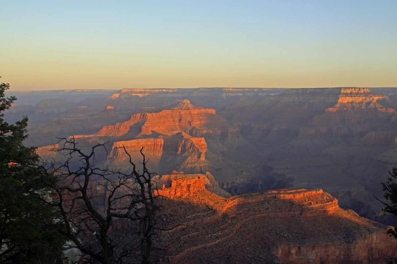 We zijn gister vroeg naar bed gegaan. Moe, maar ook omdat we vandaag vroeg opmoeten. Ongeveer half zeven komt de zon op en dan moeten we aan de Rim staan.