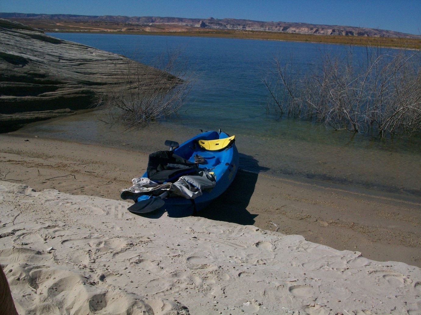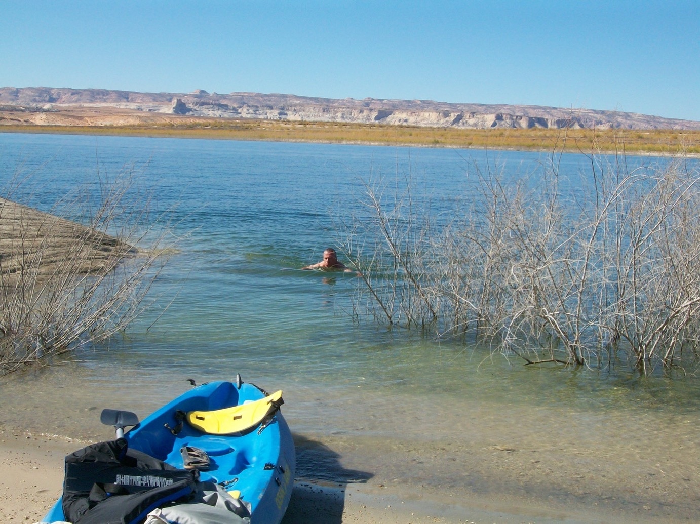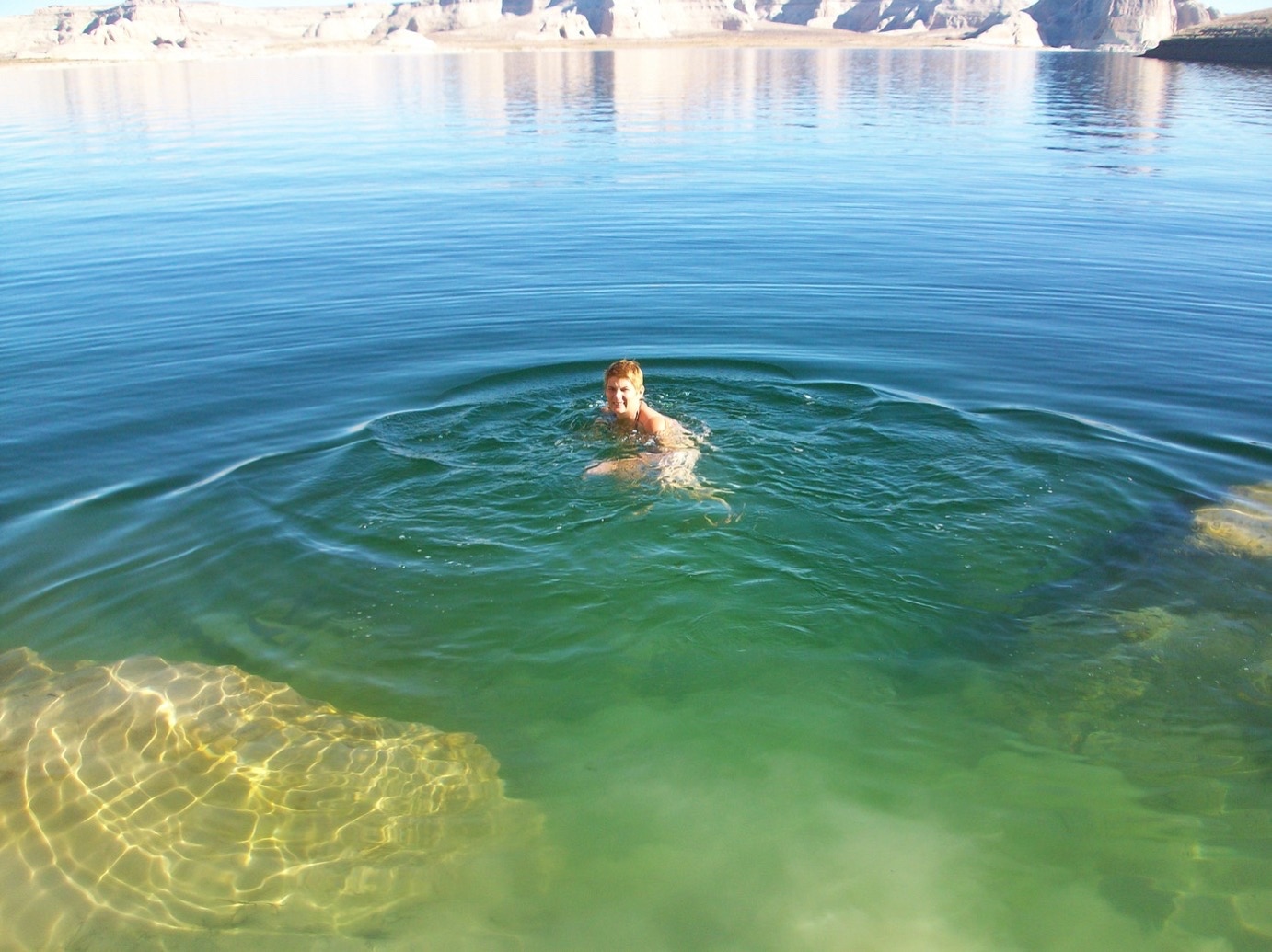 Het is af en toe wel een beetje vreemde gewaarwording als je daar rondvaart. Lake Powell is natuurlijk ontstaan door de dam die daar gebouwd is en het gebied is daarna in feite gewoon onder water gezet. Met als gevolg dat je nu af en toe over bomen of tussen de toppen van bomen vaart die onder water staan. Beetje spooky. Doet me denken aan die scene in The Lord of the Rings waar Frodo in dat moeras in het water valt met al die geesten die daar ronddobberen.