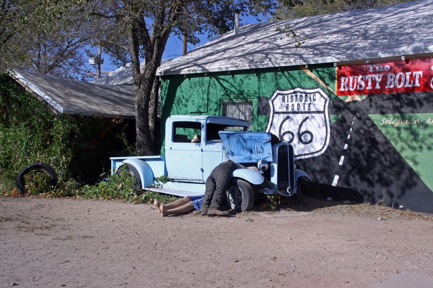 Seligman is een verplichte stop. En niet alleen voor ons. Want gelijk met ons wordt een buslading oudjes en een buslading Japanners losgelaten op de vergane glorie. Maar je moet het gezien hebben. En we voegen weer een magneetje aan onze verzameling toe.