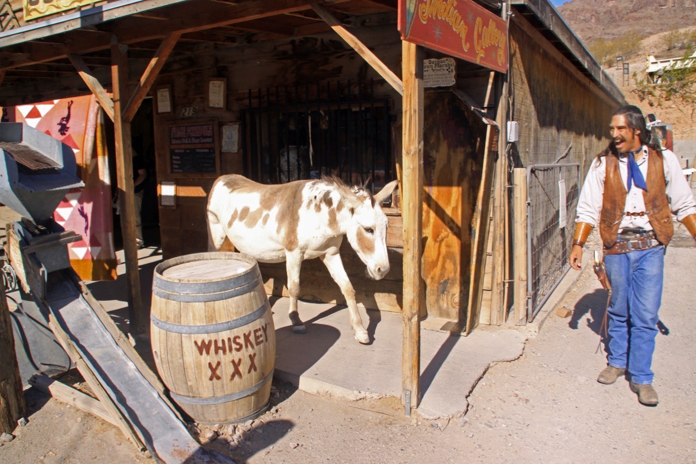 Eindelijk bereiken we Oatman. En dit maakt het – naast de ondanks alles mooie weg – de moeite en de spanning waard.