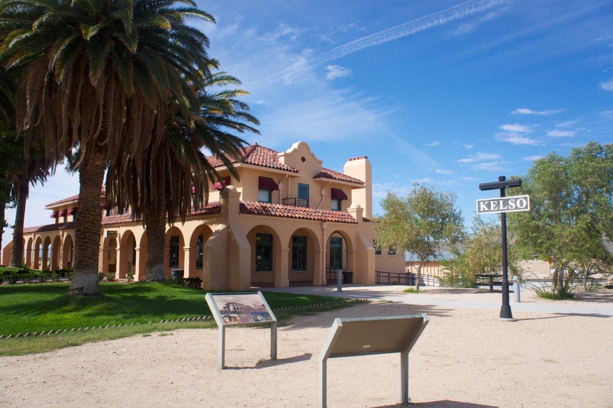 In dit deel van de rit zit ook een stop bij Kelso Depot en de Kelso sand dunes ingepland. Kelso was, lezen we op informatieborden als we daar zijn, in 1944 de plaats waar heel veel oorlogsmateriaal maar ook staal op transport werd gezet, om aan het eind van de tweede wereldoorlog te worden gebruikt. Marja heeft een foto gemaakt van het volledig gerestaureerde depot, waarin nu ook het visitor-center is gevestigd. We kopen daar weer eens een magneetje voor onze verzameling op de ijskast.