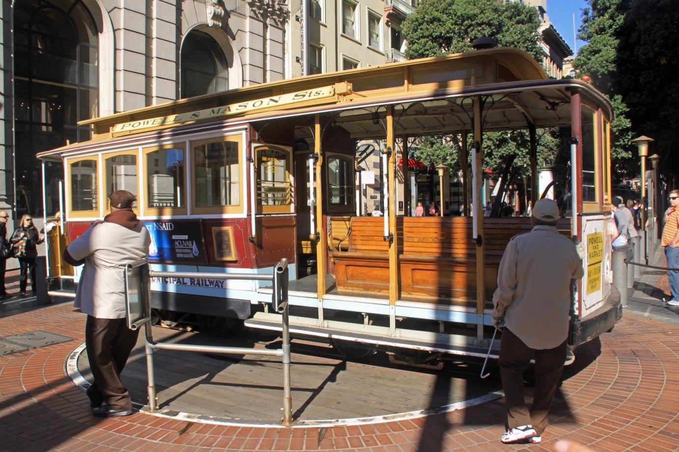 Bij het visitor-center van de Muni hebben we een driedaagse pas gekocht. Daar kun je in alle metro’s, bussen, trams en zelfs de cable-car. 18 dollar kosten die passen en das echt geen geld. Als goede toeristen gaan we in de rij staan om in de cable-car te kunnen komen.