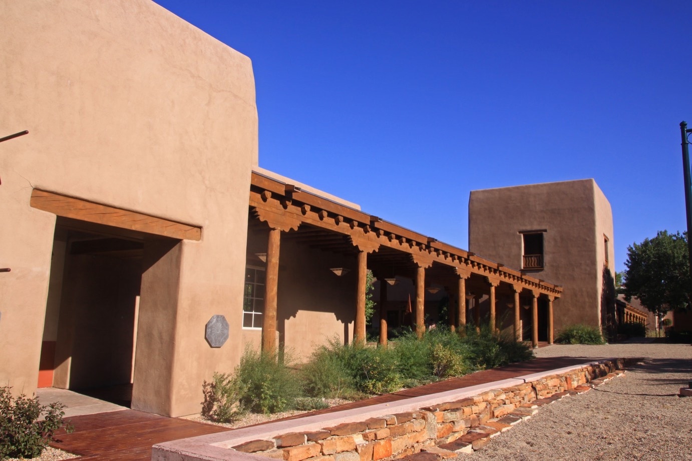 Santa Fé: wat zal of kan ik er van zeggen. Een mooie stad. De gebouwen zijn allemaal strak gebouwd. De parkeergarage ziet er niet als parkeergarage uit. En we kunnen het visitor-center niet vinden. Ook al staat de richting wel op bordjes aangegeven.
