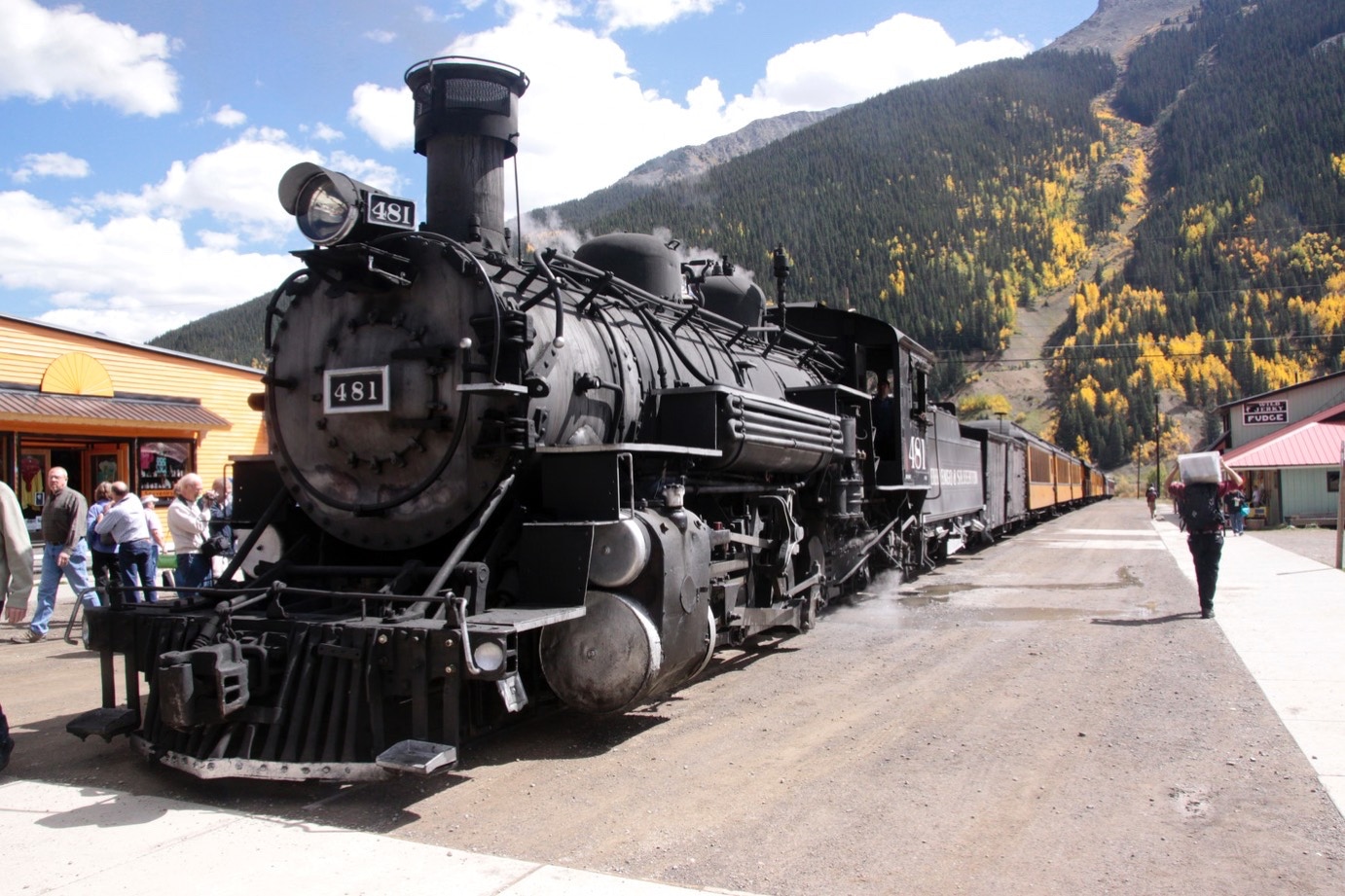 Onderweg stoppen we ook nog even in Silverton. Een stadje dat in oude stijl in stand is gehouden (net zo iets als we vorig jaar zagen bij Seligman langs Route 66). En omdat dit de eindstop is van de treinrit met een oude stoomlock door een canyon vanaf Durango, blijft dit stadje - in tegenstelling tot Seligman - overeind. Want de passagiers van die trein krijgen drie uur de tijd om daar te shoppen en er rijden twee treinen op een dag. En we hebben gezien hoeveel mensen er uit zo’n trein stappen in Silverton. Als we dat zien zijn we eigenlijk wel blij dat we die rit niet gaan doen. Daar komt nog bij dat de trein ‘s morgens al om acht uur vertrekt en in de avond rond 6 uur pas terug is.