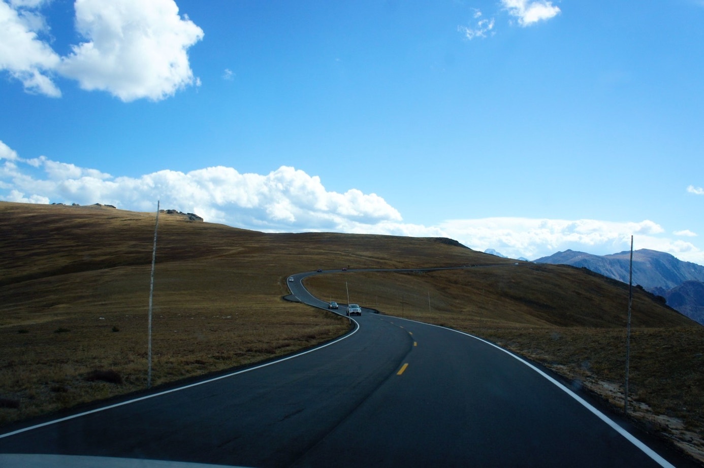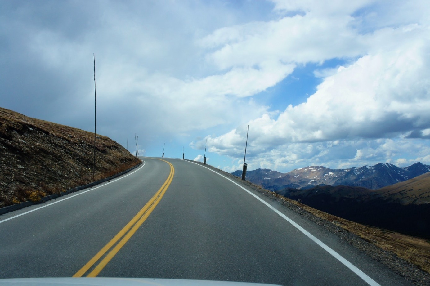 En dan komen we bij de Trail Ridge Road. De weg die tot 3700 meter hoog gaat. Het eerste stuk valt nog wel mee, nog niet zo stijl en aan weerszijden nog redelijk vlak. Maar hoger zijn er stukken waar voor de winter al stokken langs de weg staan om aan te geven waar de weg is als er veel sneeuw ligt. En die stokken komen soms boven de camper uit. Maar dat zijn ook stukken, waar je aan de rechterkant van de camper langs hellingen naar beneden kijkt, die nog net niet loodrecht zijn, maar toch zo steil dat als je daar afrijdt je wel een paar keer over de kop zal gaan. Niet goed voor je. En, anders dan bij de Moki Dug way staan hier alleen maar die palen (5-6cm doorsnee) langs de weg. Nou die houden je echt niet tegen. Je probeert dus zover mogelijk naar het midden te rijden en zover mogelijk van het randje. Maar omdat het nogal druk is (en dat is een understatement) valt dat niet altijd mee.
