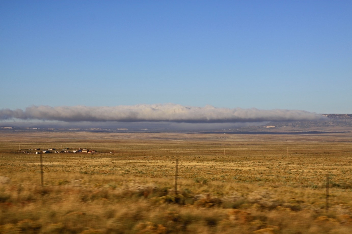 En het weer begint er al weer een beetje op te lijken. Langzaam trekken de wolken die er ’s-ochtends nog hangen weg en voor we het weten zitten we weer onder een strakblauwe lucht en verbazen we ons weer over de uitgestrektheid van het land en de eindeloze wegen waar we over rijden.