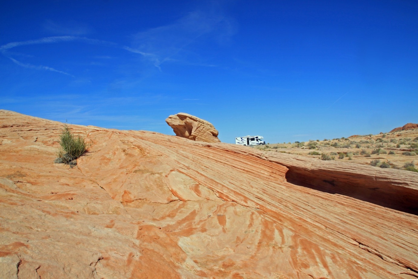 We nemen de afslag naar Valley of Fire, en zijn alweer onder de indruk van het landschap. Vlak voor Valley of Fire, maken we nog een foto stop. Wanneer we op een heuveltje staan en het landschap bekijken, wordt ons duidelijk wat bedoeld wordt met een oorverdovende stilte. Ik heb nooit geweten dat stilte echt oorverdovend kan zijn, en dacht dat het zo maar een uitdrukking was. Maar als je stil staat hoor je echt helemaal niets, terwijl je oren heel hard bezig zijn om toch nog ergens geluid te registreren, maar er is gewoon geen geluid. Een geweldige ervaring wederom