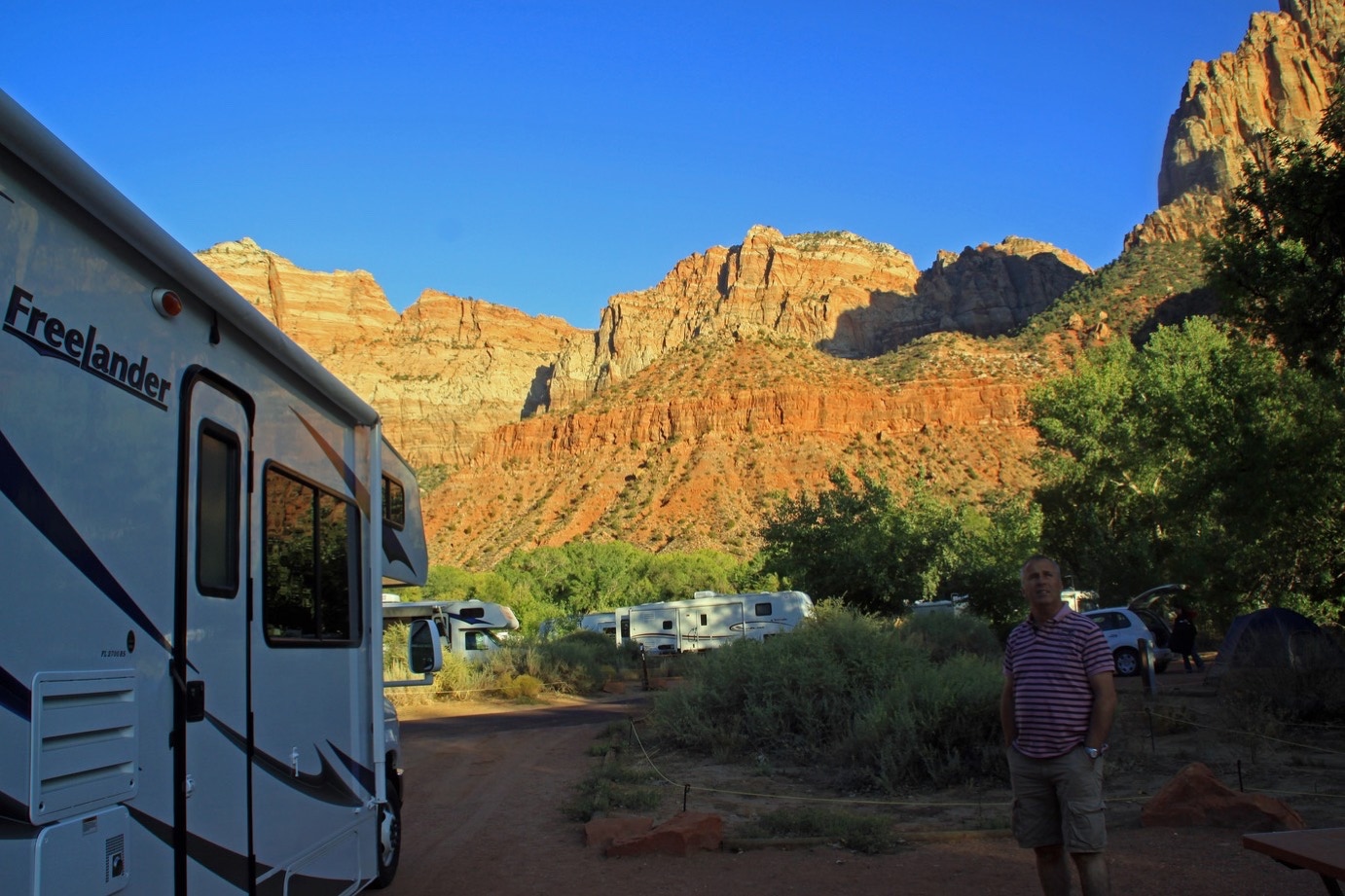 Met pijn in ons hart verlaten we Valley of Fire en zetten koers naar Zion. Even voor st George wordt de omgeving weer oogverblindend, dit blijft zo tot op de camping in Zion, je weet gewoon niet waar je kijken moet, steeds is het weer anders, maar alles is even mooi. We worden er zelfs een beetje emotioneel van.