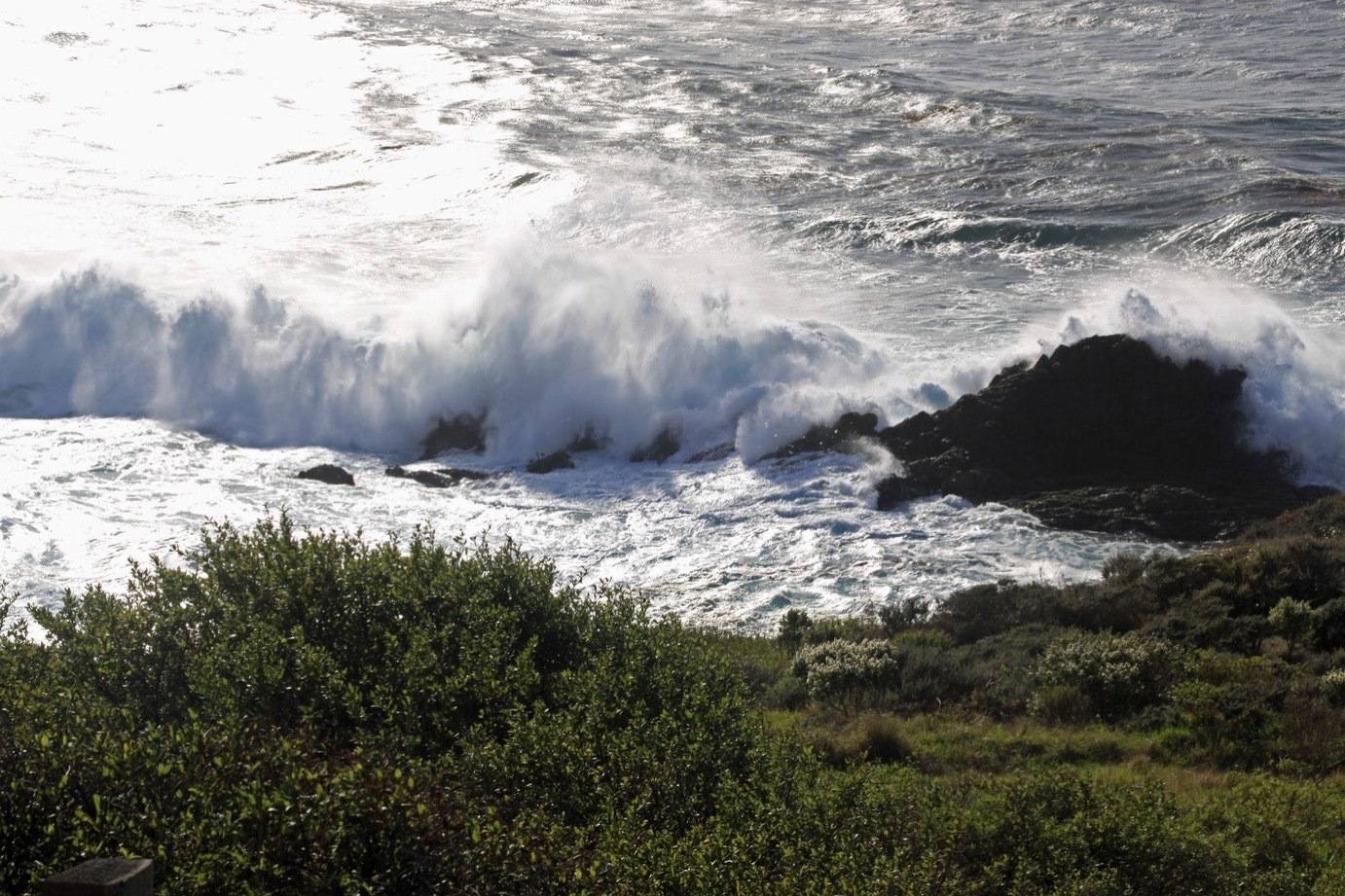 En dan begint Highway 1 pas echt. Er moet weer geklommen worden. En gedaald en gedraaid en weer geklommen. Het lijkt wel een Roller-coaster (zo noemen ze die achtbanen toch tegenwoordig?). Maar het lijkt ook wel of Highway 1 en de wind hebben samengespannen. Het is inmiddels echt hard gaan waaien of misschien moet ik maar gewoon zeggen: stormen. Bij sommige bochten lijkt het wel of de wind er alles aan doet om ons tegen te houden. Soms voelen we ook dat de RV echt inhoudt als de wind recht op de kop staat. En Highway 1 is voor iemand zoals ik (ben niet echt een fan van hoogtes) toch al een inspannende rit. Die wind maakt het nog eens extra (in)spannend.