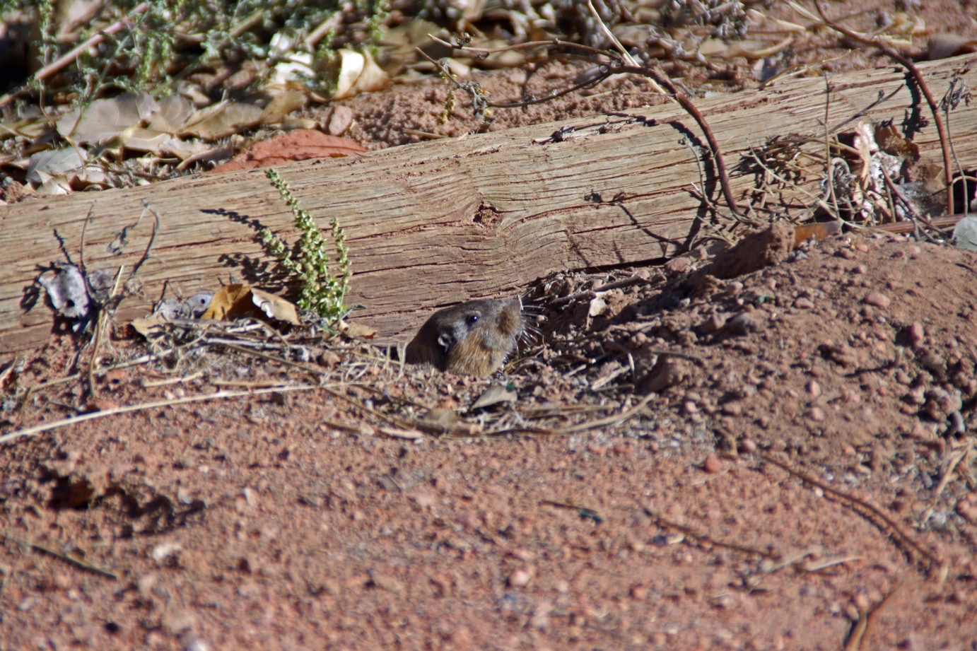 We hebben hier trouwens een heel klein buurmannetje of vrouwtje, wat het precies is weten we niet, maar het lijkt op een soort hamster, die onder de grond zijn of haar holletje aan het maken is. Iedere keer zien we zijn koppie boven de grond, en hem/haar allerlei blaadjes en takjes naar binnen slepen.