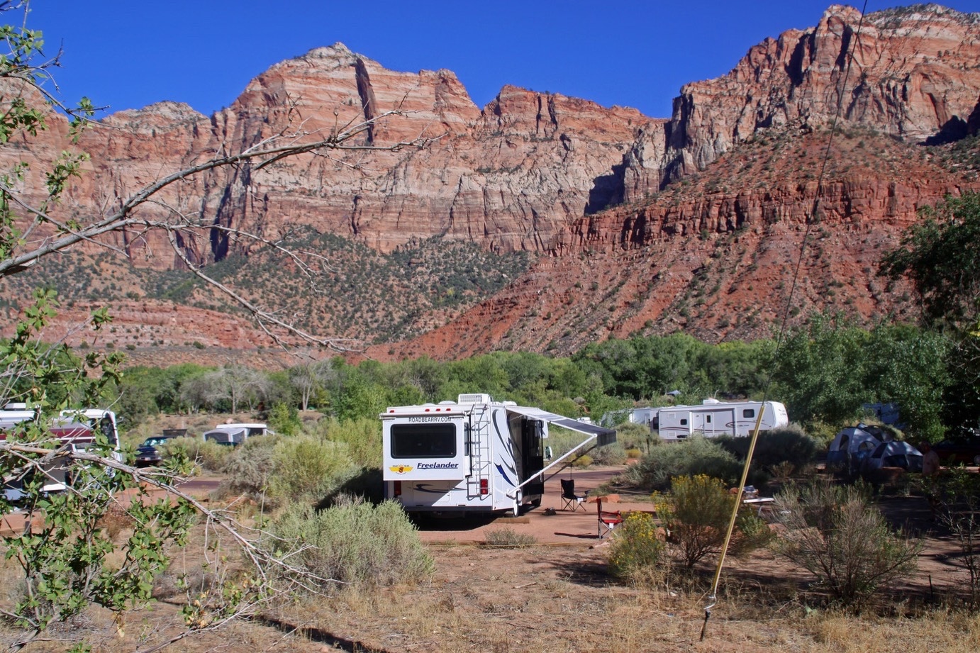 We lopen terug naar de campground, en gaan daar proberen een fikkie te stoken, maar wij zijn duidelijk geen kampeerders, en geen Amerikaan, want met geen mogelijkheid krijgen wij het hout goed brandend. Er gaat een hele fles firestarter overheen, maar het blijft smeulen en vooral ook roken. We geven het op! Dit is niet voor ons weggelegd. In de camper ga ik het verslag maken, en Ko leest nog wat. Morgen willen vroeg op pad richting Bryce, en op de weg daar naar toe willen we eerst nog de Canyon overlook trail lopen, aan de andere kant van de tunnel in Zion. Omdat we ook nog wel wat van Bryce willen zien, moeten we dus wel weer vroeg op pad.